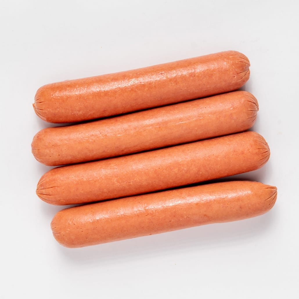 All beef 4-1 hot dog. Fully cooked, un-smoked. ¼ pound. 10# Bulk case. Approx. 40/case